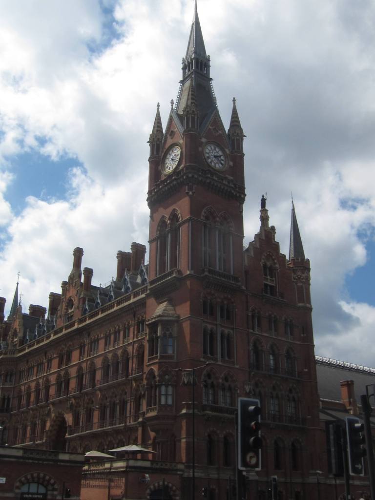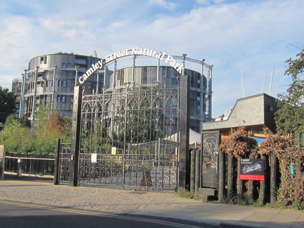 At 5ish we head up to the “Coal Drop” – another redeveloped area past the redeveloped mixed use office space and cross the canal to an area where they’ve installed posh shops and a ton of restaurants.  We don’t have reservations but hope we can get dinner before 9:00 PM.  It’s hot, and the late afternoon sun is blazing as we trek past the greenspace, office buildings, fountains and restaurants that shunned us the previous night.