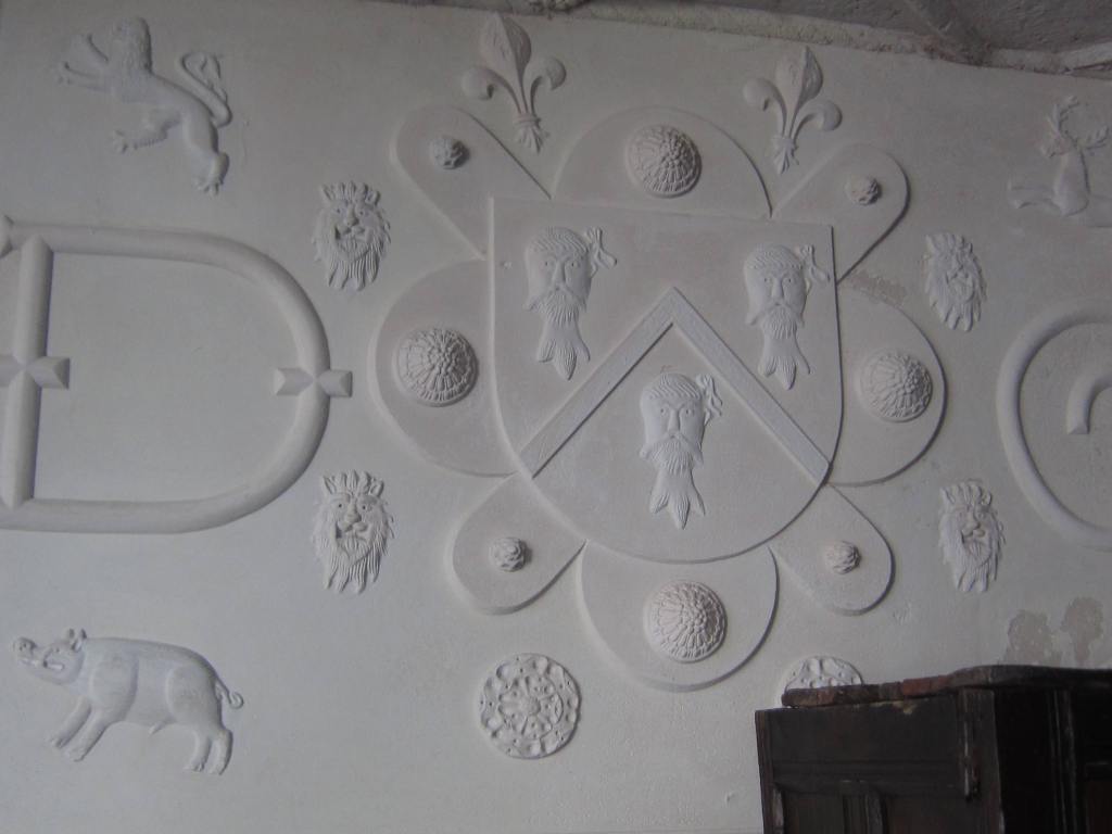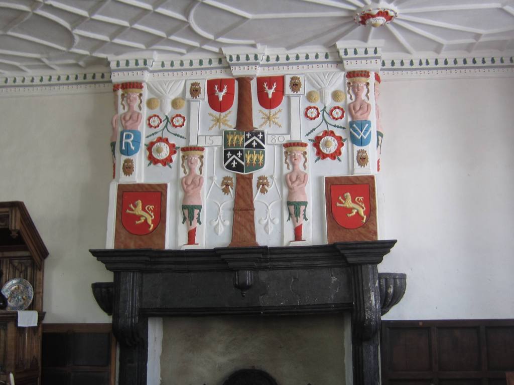Our next stop is the “Tudor House” which was,  you guessed it, built in Tudor times by a gentleman who worked for the court and accepted a lot of coin for access to the people in power (okay, it wasn’t said quite like that, but that’s the gist).  He also went to the continent for soldier duties and had seen the glories of Rome and Greece.  When he retired to Wales, he built a substantial home for his sweetheart and eventual family.  Alas, she died, but he found a new wife with the same initial (he had worked her initial into the decorative plaster walls) and it all worked out.  The house was completed in 1577 or thereabouts.
