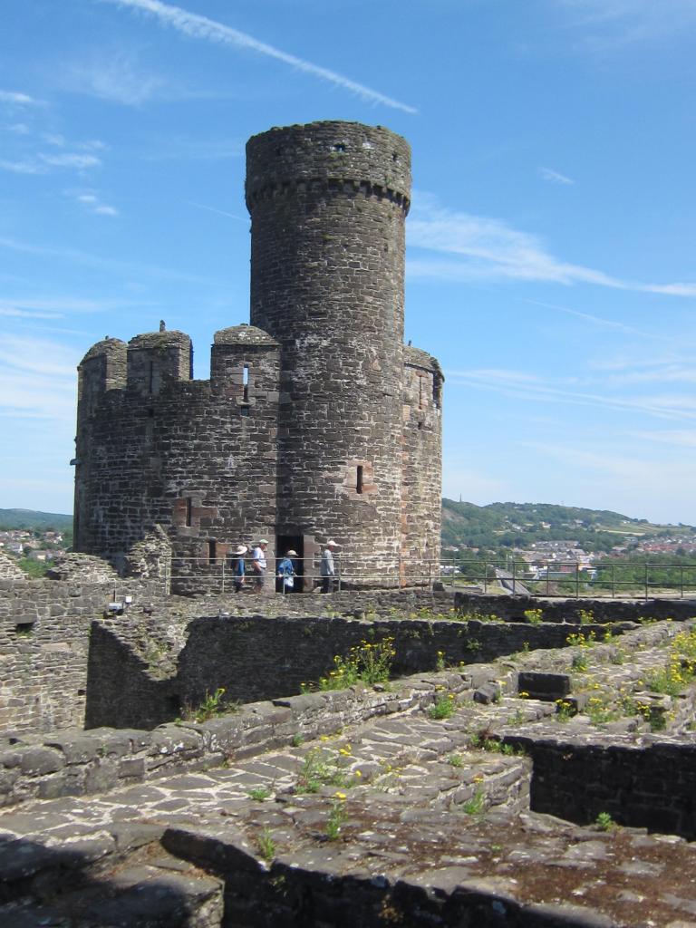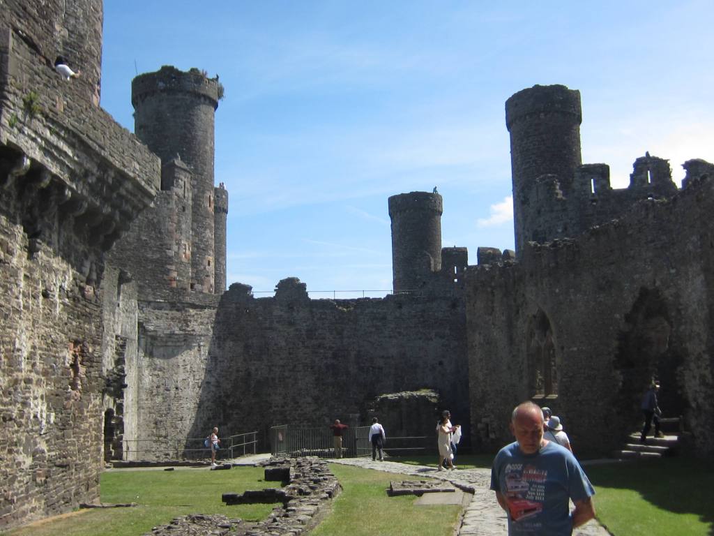 Castle Conwy is well preserved by the National Trust and Unesco and it’s fascinating to walk where King Edward surveyed his perimeter.  Lots of twists and turns and it must have been cold back in the day.  We recognize the “ringed defense” architecture that we saw at Windsor and admire the defensible walls.  The day is sunny and clear and it’s all very satisfying.  We get the overview and a lot of history and then have time to explore.  Les checks out the tower and I pick my away along the stone walls, leaning on my cane to stay upright.  Fire knee is well braced and the cane is a necessity.  I’m able to move about quite freely without pain so I’m a happy girl.
