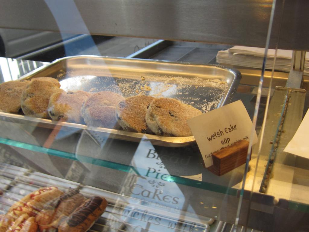 After the tour we pause at a local bakery where I snag a few Welsh Cakes – there’s a place in Southern California that bakes and sells them and I want to compare.  I also grab an “Eccles cake” because I’ve never had one.